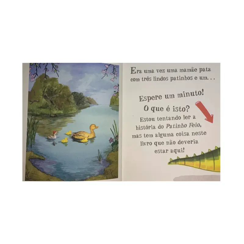 Seria apenas um livro sobre a história do Patinho feio, porém um crocodilo invadiu as páginas do livro. Para conter esse crocodilo assustador, que come as letras e palavras da história, vai ser preciso a interação do leitor em vários momentos. É um livro divertido que recomendamos.