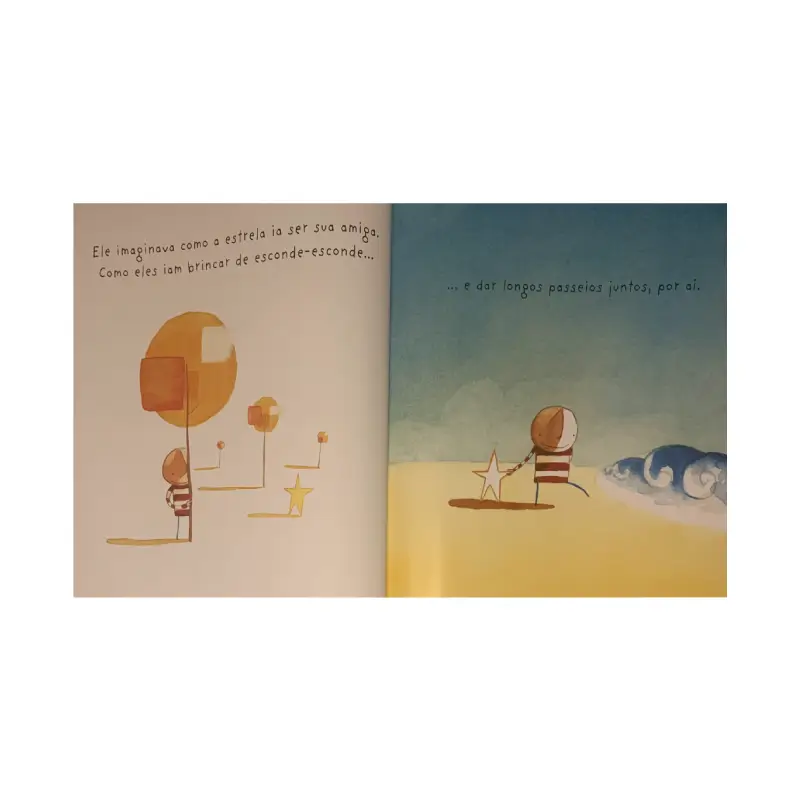 Quem nunca pensou em alcançar uma estrela na infância? Neste livro bem produzido, com capa dura, folhas de qualidade e boas ilustrações, o garotinho tenta de todas as formas alcançar uma estrela para poder tê-la só para ele. O texto remete a doçura e inocência da infância e, ao final, temos uma surpresa que traz felicidade e contentamento ao garoto. É um bom livro, sugerindo-se apresentá-lo a crianças em torno dos três anos de idade.