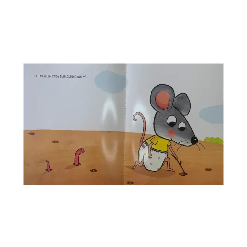 Esse curioso ratinho resolve investigar o que tem dentro das fraldas dos seus amiguinhos. Essas fraldas se apresentam através de dobraduras que podem ser rebatidas pela criança para observar os cocôs dos bichinhos. É um livro que ensina sobre o desfralde de forma divertida. Vale a leitura.