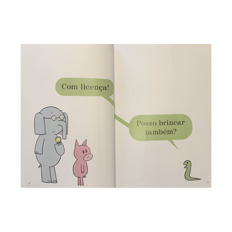 Eis que, durante a brincadeira de bola entre o Elefante e a Porquinha, chega um novo amiguinho querendo brincar. No entanto, esse amigo é uma cobra, mas as cobras não possuem pernas ou braços para jogar a bola, porém isso não foi empecilho para a nossa querida dupla brincante. Em mais um livro de ilustrações simples e texto enxuto, temos uma divertida história do Elefante e da Porquinha, abordando aqui uma temática de inclusão.