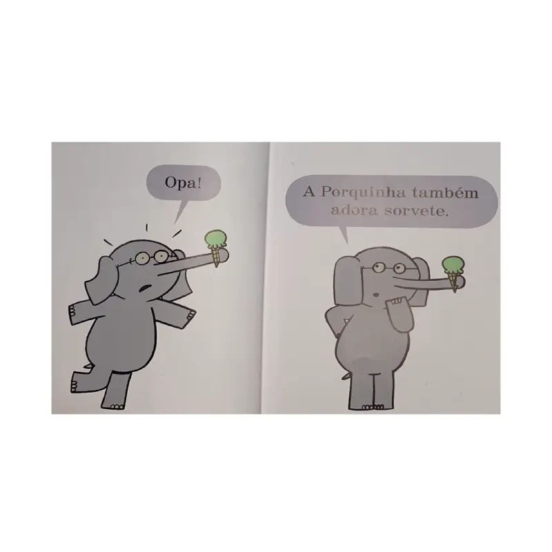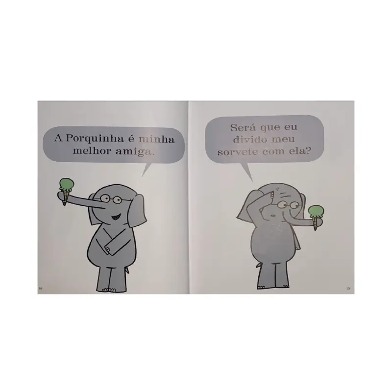 O Elefante adora sorvete, mas será se ele deveria saborear sozinho ou dividir com a Porquinha? Ele tem de decidir rápido, pois o sorvete pode derreter. Que dúvida cruel!